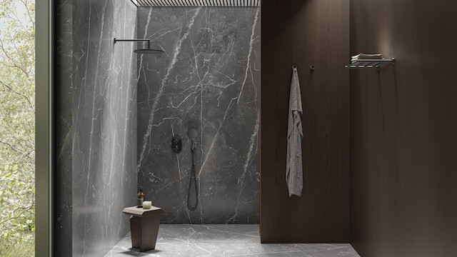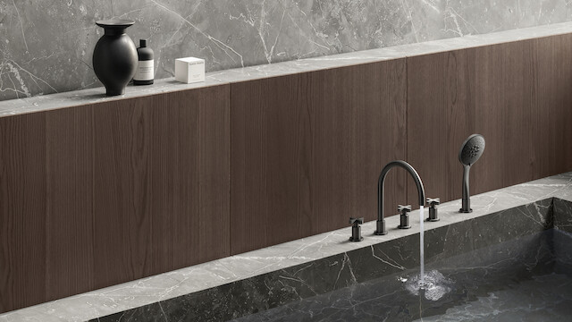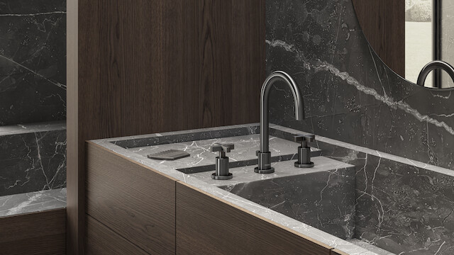 Trois couleurs, trois âmes, trois façons de vivre la salle de bains. Cromo brillant, une finition lumineuse et intemporelle, allie esthétique et fonctionnalité ; Grafite brossé PVD, profonde et sophistiquée, exprime une personnalité affirmée et high-tech ; Mora mat, douce et veloutée, apporte intensité et caractère à l’espace.