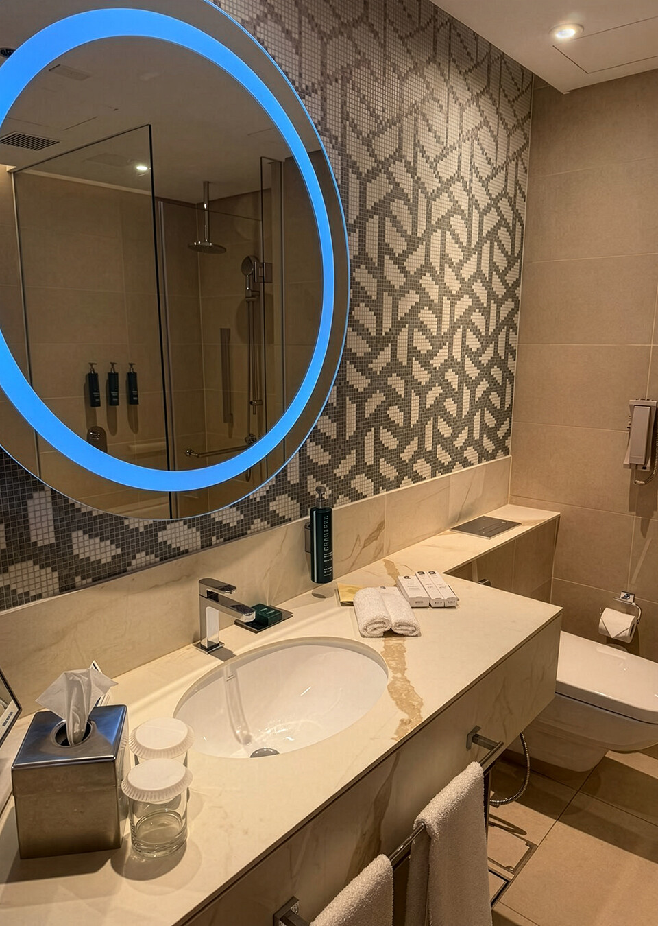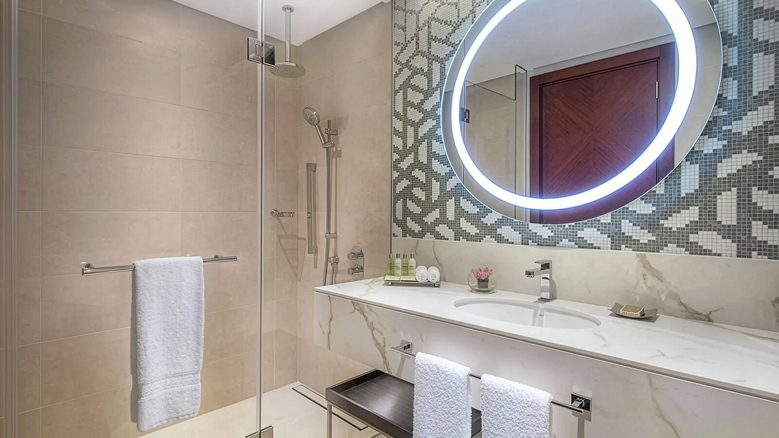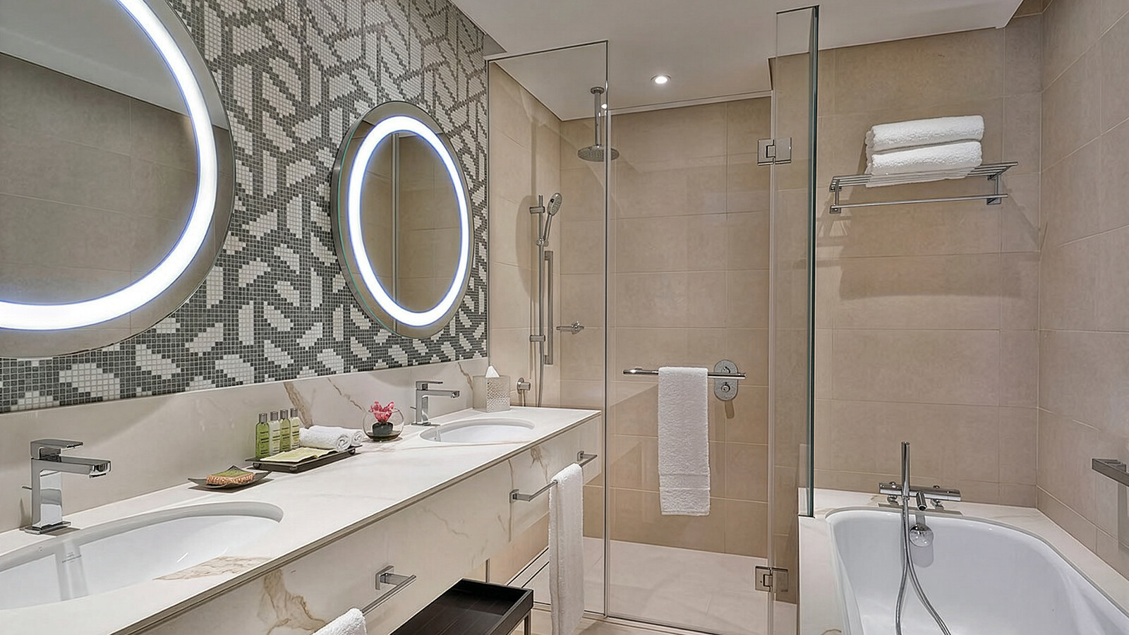 For this impressive project, the technical and aesthetic choice fell on Nobili’s Live and Up collections. A decision that highlights the utmost attention to guest well-being, ensuring safety and perfect water temperature control-essential features in a setting of international luxury.