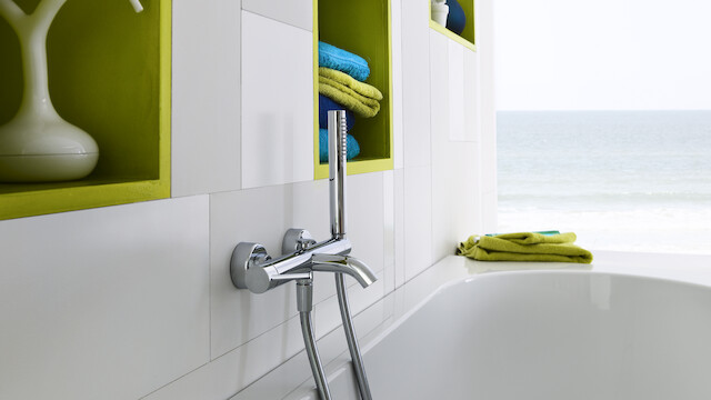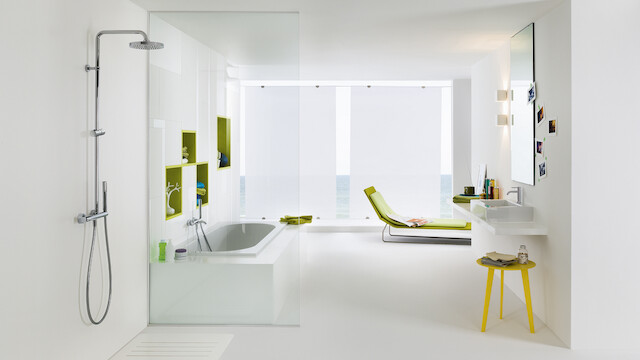 La natura vivace è valorizzata dall’incontro tra linee snelle e filanti in un ordinato gioco di proporzioni tra essenzialità e dinamismo. Il gruppo vasca con set doccia è esempio concreto di sintesi tra stile e praticità: non necessita di forare la parete. Ogni dettaglio suggerisce un’idea di comfort, nella cornice più sincera del benessere quotidiano.