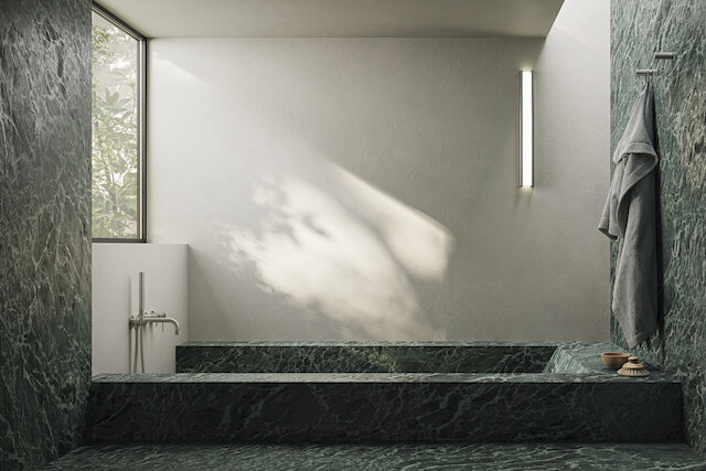 Voor het bad is er naast de 2-weg inbouwversie met enkele hendel ook een staande kolom met geïntegreerde handdouche verkrijgbaar. Een oplossing waarmee moderne ruimtes en unieke wellnessomgevingen ontworpen kunnen worden door het bad in het midden van de ruimte te plaatsen.